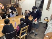 しかしこれだけでは終わらないのが有馬高校BHE同好会の良いところ。おもてなしの心。12月と言えば、クリスマス。入部してきたときに、お菓子を渡したい。そんな思いを実現させ、子どもたちの笑顔を引き出していました。