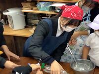 下の写真最初は10月のたこ焼きの様子です。みんなでつくる楽しさ、順番を待つことを学びながら行いました。今回の11月の様子は看板だけです。次回は12月。