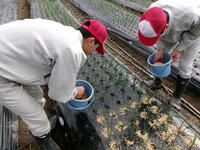 追肥も1穴につき2粒ずつ、正確さが求められます。
