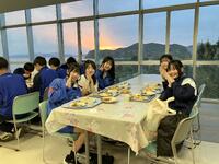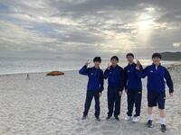 2日目の活動の後、近くの砂浜で各クラス写真撮影を行いました。夕焼けの海をバックに少し肌寒い風に吹かれながら、景色を眺めました。