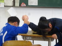 今回は12月の最後の練習の後の様子もお送りします。最後の日は「次への英気を養う」べく、豚汁を作ってみんなで食事会をしました。この日に欠席の部員もいましたが、大鍋いっぱいの豚汁はあっという間になくなりました。その後は(なぜか)腕相撲大会になり、ずいぶん盛り上がりました。