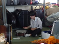 楽譜や楽器の整理をこなす人々。
