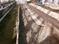 約20メートルのベッドの土を出し、別の露地圃場の土を入れていきます。