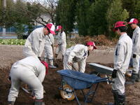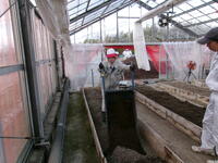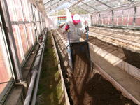 今回は、2年生(来年度の野菜専攻生徒)が土耕温室内の客土を行いました。