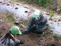 収穫の終わった区域は次年度のために上層と下層の土を入れ替える天地返しを