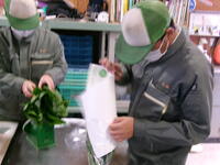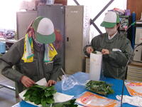 収穫したホウレンソウは計量、袋詰め作業を行います。