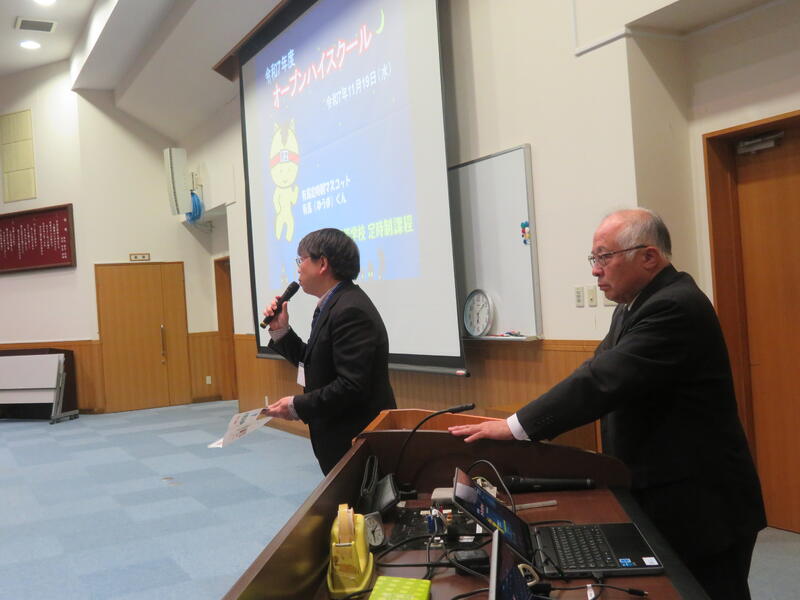 (本校職員による学校紹介) (有志生徒による学校紹介)