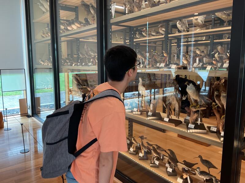 イノシシやキツネ、ツキノワグマやイヌワシなどの野生動物の剝製をまじまじと見ながら、「今にも動き出しそうだね」と思わず口にしている生徒もいました。
