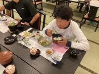 夕食は、鍋あり刺身あり天ぷらありの豪華な料理でした。子どもたちは、まずは好きな物から、そして先生に励まされながら、苦手な物にも挑戦できた、賑やかな時間となりました。
