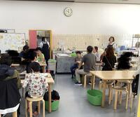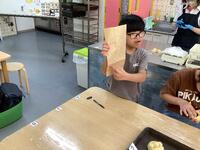 次の活動はパン作り体験です。スタッフの方の説明をよく聞きながら、児童たちは思い思いにパン作りを楽しみました。コアラや鬼太郎、トム&ジェリー、アンパンマンなど、見ていて楽しい子どもたちの世界観満載のパンばかり。ときどき先生の手助けを受けながら、全員が見事に完成させることができました。