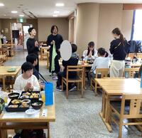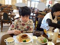 昼食はハンバーグランチ。皆、おいしそうに食べていて、大満足の様子でした。