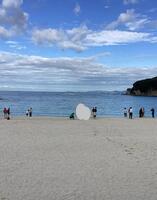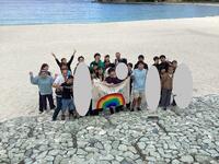 ホテルを出て白良浜に。美しい砂浜や波打ち際をはしゃぎながら楽しむ生徒たちの姿が印象的でした。
