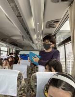 出発直後は賑やかでしたが、次第に疲れが出てきたのか、眠っている生徒も多く見られました。