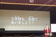 私からは、笑顔で年末年始を過ごしてほしいという願いを込めて、校長挨拶ではM-1グランプリの話題を取り上げました。最後は、みんなで元気よく挨拶をして締めくくりました。