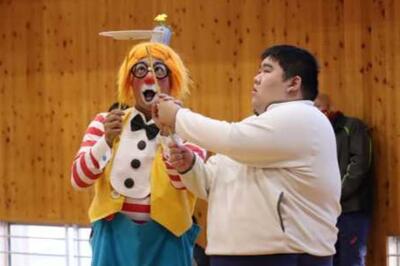 バルーンアートや椅子を使ったパフォーマンスでは、職員も舞台に上がり挑戦!会場全体が一体となって盛り上がりました。