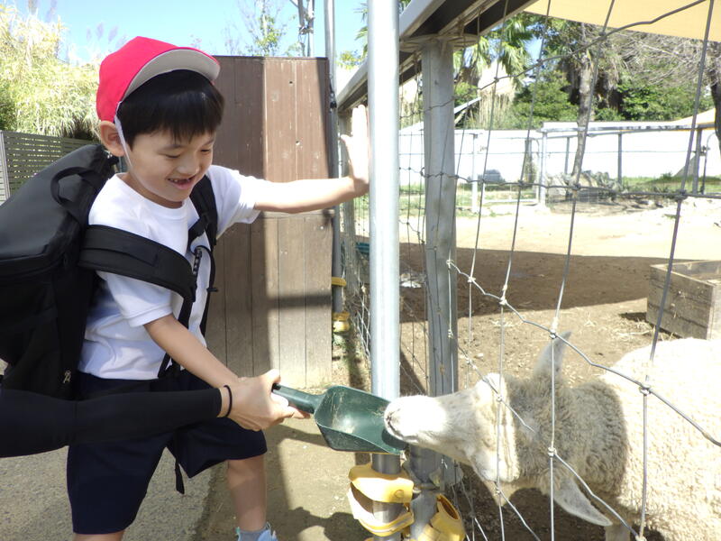 当日は、天候にも恵まれ、元気に動き回る動物をたくさん見ることができました。オオカミ、トラ、アザラシのえさやりにも遭遇し、勢いよくえさを食べる動物の姿に子どもたちも興味津々でした。また、ヒツジやマーラ、カメのえさやりは、事前学習として学校で練習して楽しみにしていました。全員が好きな動物にえさをあげることができ、えさを食べている様子を見て誇らしげな顔をする子もいました。
