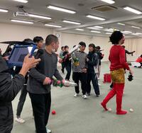 楽しく行事を終えたと思いきや、なんと2体の鬼が襲来!生徒たちは「きゃ~!」「こわい~!」と逃げ回ったり、鬼に向けて豆を投げたり、イワシとヒイラギの飾りがついた剣で攻撃したり、それぞれの戦い方で鬼退治を行いました。鬼の襲来で涙目の生徒も、鬼が去るとほっと一安心の表情を見せました。