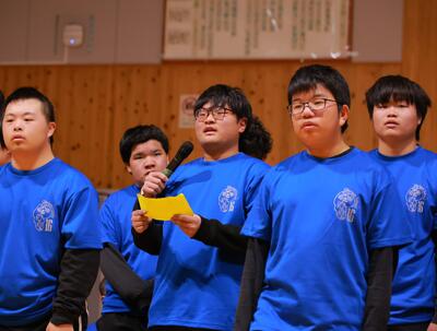 高等部最後の学習発表会は、学年目標である「輝く未来へ ~ 全力 前進 感謝 ~」をテーマに、学習の集大成を4部構成で皆で力を合わせて発表しました。