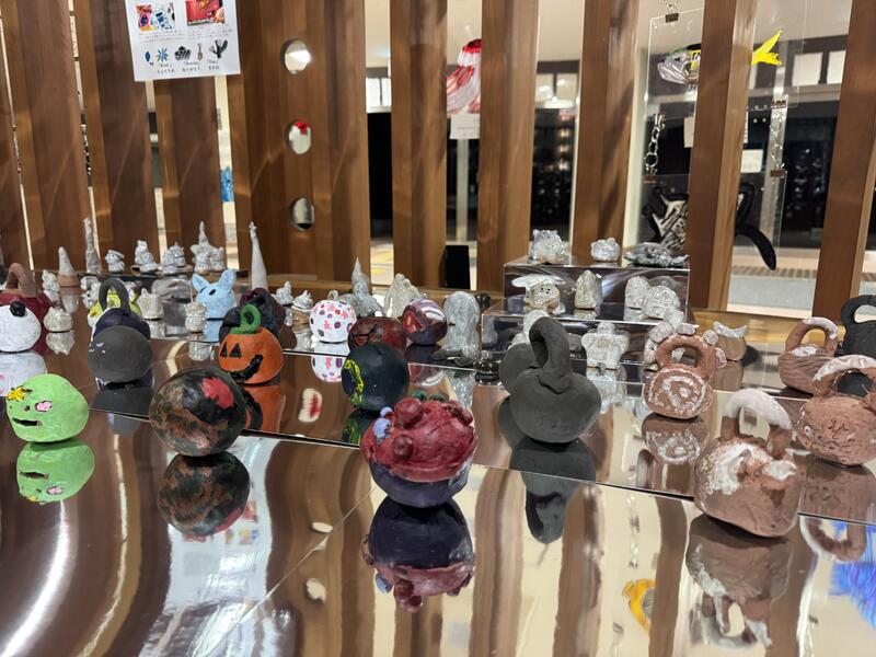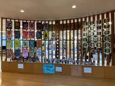 美術からは、海の生き物やカラベラをモチーフにした作品、色や表現を楽しむスプレーアート、冬をテーマにした土鈴などの陶芸作品たち。家庭科からは、修学旅行で使用するために作ったサコッシュやお弁当袋を展示しました。どの作品からも、「より良いものを作ろう」という思いが伝わり、これまでの学びと努力の成果がステキな空間を生んだ作品展となりました。