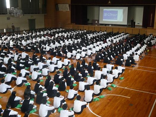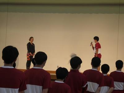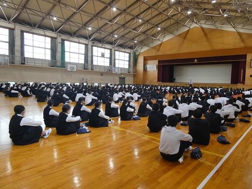 1年生が2,3年生に生徒会から紹介され、全学年が揃いました。