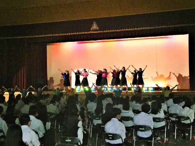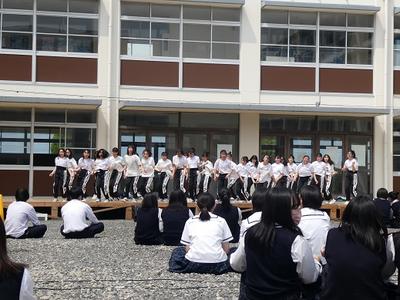 一日目は、体育館にて文化部の舞台発表がありました。幕間には各クラスのCMが放映されました。