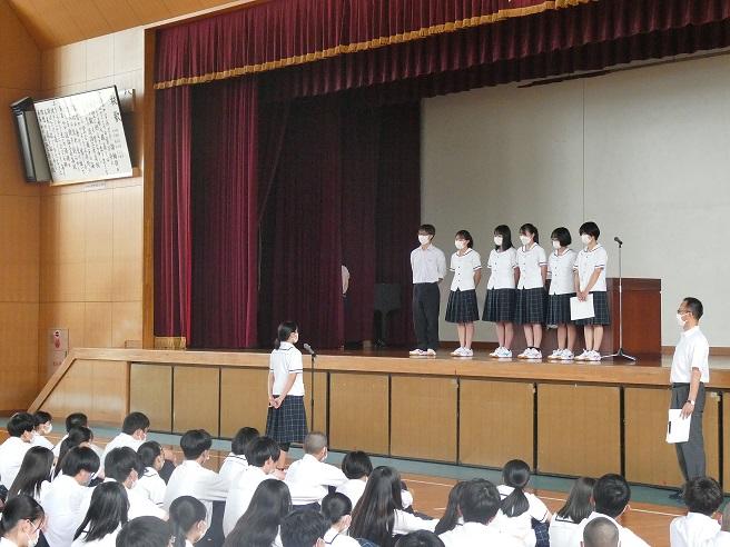 1学期中間考査が終わり、全校集会で伝達表彰を行いました。