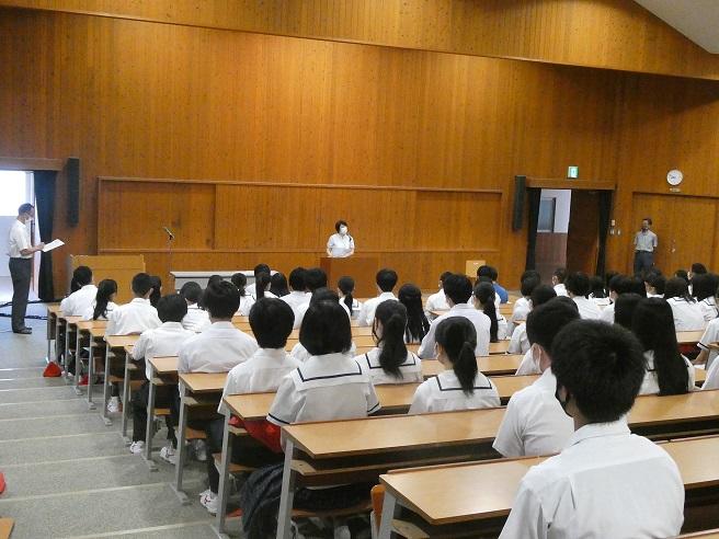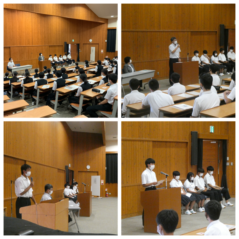 生徒会役員に立候補する皆さんの立会演説会がありました。どの候補者からも淡路三原高校への熱い思いが伝わりました。