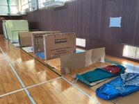 今年は避難所体験と、各学部学年で防災に関する授業をしました。テントに入ったり、マットや寝袋、段ボールベッドに寝たりと、身近にあるものをどう活用してより快適に過ごすかを考えました。小学部の授業は「防災ダック」。ゲームを通して身を守る姿勢を学ぶことができました。