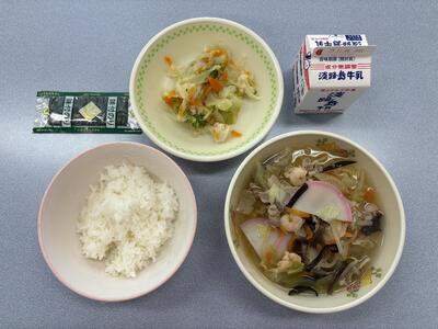 減量ごはん 牛乳 しょうゆラーメン レモンあえ 味付けのり