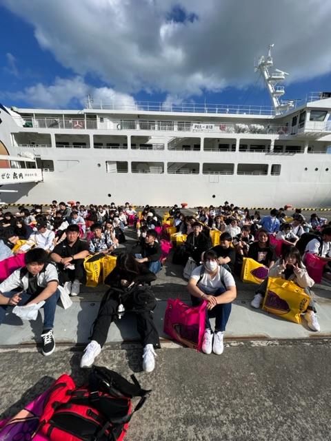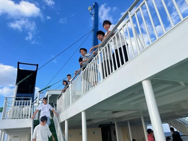 波浪注意報が出されていた波の中約1時間の船旅です。船酔いする人もいましたが、、、元気に波風を楽しんでいる人もいました。