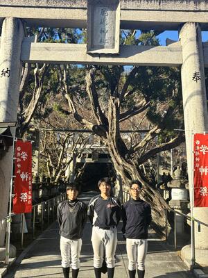 2026年 初詣へ行ってきました 投稿日時 : 01/15 職員_15 令和8(2026)年1月6日(火) 本年の初練習に合わせて、剣道部と共に鹿嶋神社へ初詣へ行ってきました。 現在、2年生3名での活動です。 しかし、昨年と比べて神社へ走っていくスピードが速くなっていることに、1年の成長を感じました。 毎日、コツコツと練習を積み、春・夏と結果を出せるようにお参りしました。 何卒、姫路別所高校野球部を本年もよろしくお願いいたします。