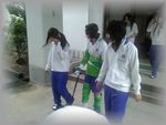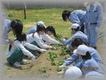 本校生徒と姫路特別支援学校分教室の生徒が、体育祭や文化祭などの諸行事で交流し、 ワープロでの文書作成やさつまいもの苗植え、車いす講座や高齢者疑似体験など、年間数十回の 共同学習を行います。