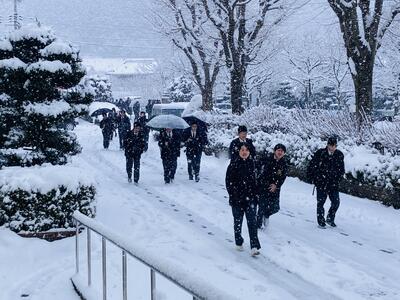 今朝の千種町は-1℃(午前8時時点)でよく冷え込んでいます。姫路からの通勤道中で山崎町までは青空が広がっていて「今日は明るい朝だ~!」と気分よく車を走らせていましたが、千種町に入ると急に雲ゆきが怪しくなり小雪が舞っていました。今も雪が降り続いていますが、明日にかけてまた大雪になる可能性があるようです。生徒の皆さんは、気象情報に注視しつつ、気をつけて登校してほしいと思います。