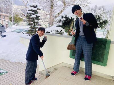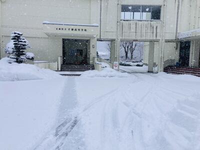 今朝の千種町は-1℃(午前8時時点)で積雪約10cm、校務員さんの手によってようやく美しく除雪され、アスファルトが見えていた駐車場もまた真っ白になってしまいました。今日は道路事情により波賀方面からのバス通学生が遅れて登校したため15分遅れの授業開始となりましたが、これも千種あるある…。生徒は警報が発令されずガッカリしているかも知れませんが、私は遅れてでも全員が揃って通常の学校生活ができていることに安堵しています。今日は3年生の自由登校前最後の登校日でもあったので、なおさら嬉しいです。