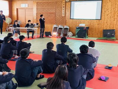 いやぁ、素晴らしい機会をいただきました。見て聞いて、先進的な活動をされている同じ高校生から多くの刺激や学びを得たのではないでしょうか。2年生の皆さん、「なるほど、やってみよう!」など感じたことが次への探究へと繋がります。是非、その気持ちを大切に行動へ繋げてくださいね。2年生の皆さん、お疲れ様でした!そして、村岡高校の皆さま、お世話になりありがとうございました!