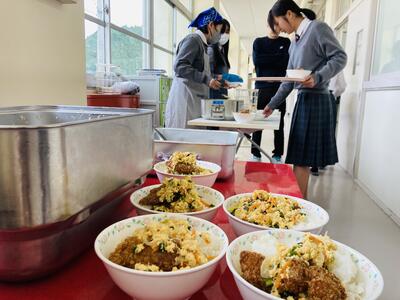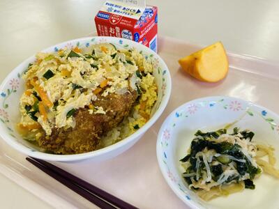 さて今日は給食の話題です。中間考査中は給食がありませんでしたので久しぶりの給食となりました。そのメニューは千種中学校の平田校長先生推しの「かつ丼」でした。豚ヒレ肉を使用した優しい味付けのかつ丼…餡には卵や野菜がたっぷりと含まれており、ヘルシーでとっても美味しかったです。寒さが増すと食欲も増します。生徒たちは、今日も美味しいかつ丼をお腹いっぱいにいただきました。3年生は進路に向けて勝負の時を迎えています。かつ丼食べて、勝負ごとに勝つ!自分に勝つ!頑張れ、3年生!!