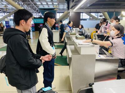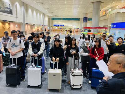 52回生はいよいよ本日より台湾修学旅行の出発の日を迎えました。天候は雨…しかし体調不良者もなく全員揃って今日の日を迎えられたことを何よりも嬉しく思います。早朝7時40分に生徒たちを乗せたバスは千種高校を出発し宍粟市役所を経由して関西国際空港へ向かいました。沢山の保護者や先生方にお見送りいただき、感謝の気持ちを胸に「しっかり楽しみつつ学んで帰るぞ!」と気合いが入りました。