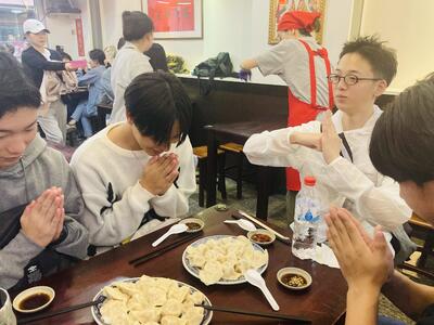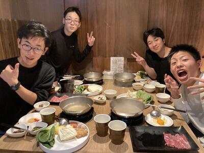 ホテル到着後に台湾のポピュラーな鍋料理をいただきましたが、台湾では野菜やお肉を湯通してオリジナルのタレで食べるスタイルで、生徒たちも様々な味に挑戦していました。トウガラシを入れすぎてタレが激辛なり台湾の洗礼を浴びている生徒もいましたが、みんな食欲旺盛です。夕食後はホテル近くのコンビニで買い出しを体験しました。見たことない商品の数々に生徒たちも興味深々でしたがお菓子やジュース、カップ麺などを購入し初めて外貨を使用して買い物も楽しみました。