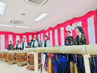 さて秋分の日の昨日、カルチャー部の生徒たちが上郡町にある特別養護老人施設「ほうらいの里」の敬老会に招待され、出前演奏を行いました。入所されている方々を前に迫力ある和太鼓演奏を披露すると、入所者の皆さんが手拍子や体全体でリズムをとりながら楽しんでいただきました。入所者の中には感動して涙される方もおられ、職員の方々からも「こんなに楽しんでいる姿、初めてみました!」と大絶賛でした。この話を聞いて私は、改めて高校生の活動が地域の皆さんに元気や勇気を届けること、和太鼓演奏が年齢に関係なく感動を与えることを痛感し、生徒たちに感謝したい気持ちになりました。本当に素晴らしい取組ですし、今後も可能な限りこうした地域貢献につながる外部での演奏を続けてほしいと願います。カルチャー部の皆さん、そして顧問の先生方、和太鼓の達人山田先生、素敵な取組をありがとうございました!