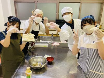 本日3,4限、1年生の科目「家庭基礎」では調理実習が行われ、手作りギョウザが作られました。私も家でギョーザは食べることありますが、今は冷凍食品で簡単に美味しいギョーザが作れるので餡から作ることはありません。おそらく、生徒たちもほとんど経験がないのではないでしょうか?