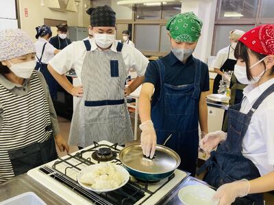 さて昨日の放課後、生徒会執行部のメンバーたちが「ええとこセンター」に集結し「ちくさふれあいフェスタ」の出店に向けて試作を行いました。10月26日(日)に開催されるふれあいフェスタでは、生徒会が本校で生産したお米を使用して、おにぎり、みそ汁、ジュースなどを販売予定で、今日は昨年度収穫したお米の余りを使用しておにぎりを試作…(当日は、今年収穫した新米を使用)また、みそ汁も作ってみてその分量や味など意見を交わしました。