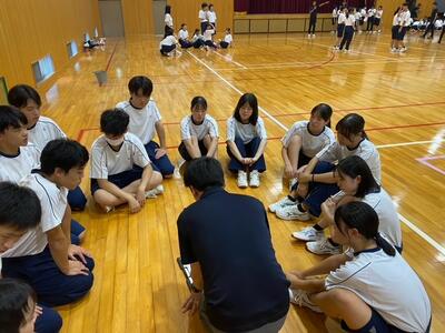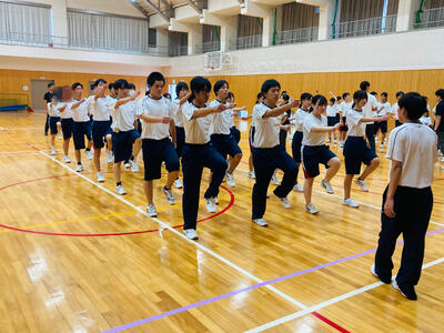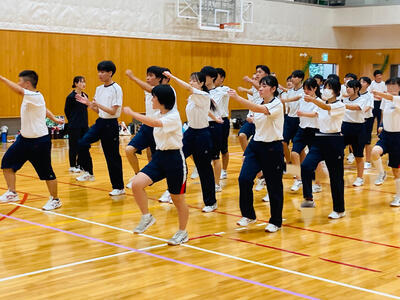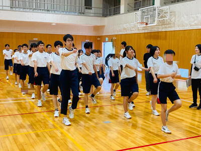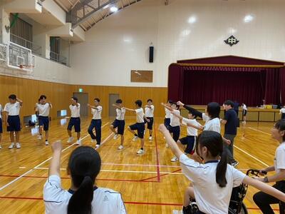 さて昨日午後から、千種中学校体育館にて中高合同体育祭に向けた3回目の合同体育が行われました。雨はあがっていましたが、グラウンド状況が悪いため体育館での実施となりましたが、生徒たちのハツラツとした姿を見ることができました。最初は全体でラジオ体操を行い、その後中高生が混在するチームごとに入場行進の練習がスタートしていきます。高校生がリーダーシップを発揮して中学生が一生懸命についていく…昨年までの学年単位の入場行進とはまた違った和やかな雰囲気があり、見ていて微笑ましかったです。その後、各係ごとに打ち合わせをして早く終わったところから演技練習する生徒の姿がありました。二人三脚やスタートダッシュ、リレーのバトン渡しなど、生徒たちが真剣かつ楽しそうに取り組んでいました。二人三脚で派手にズッコケる生徒もいましたがこれもご愛敬…、終始和やかな合同体育でした。合同体育は残り1回、そして予行演習をしてから10月4日(土)の合同体育祭本番を迎えます。是非、多くの保護者、地域の皆さまにご覧いただきたいと思いますので、ご参加のほどよろしくお願いいたします。
