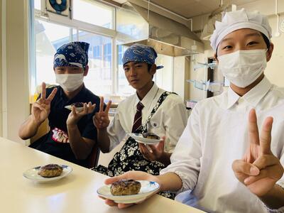 いやぁ、いいじゃないですかー。千種の美味しいブランド米「ちくさの舞」をPRできる絶好の機会ですし、千種の関係者の皆さまも喜んでくださることでしょう。最後は、みんなで試作したおにぎりとみそ汁をいただき、今日の試作で得た成果と課題を次に生かしていきます。おにぎりは、2個で100円で販売だとか…、お米高騰の昨今、破格ですね。生徒会の皆さん、当日に向け準備大変ですが、よろしくお願いしますね。
