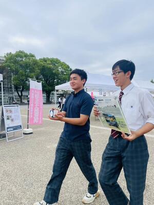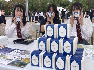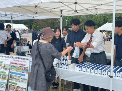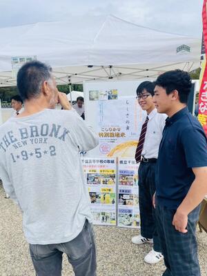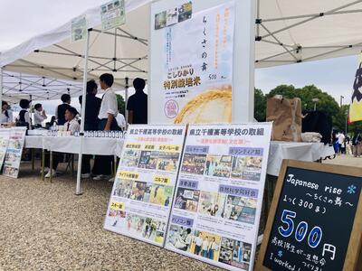 昨日、1年生の有志メンバー8名が姫路大手前広場で開催された「兵庫県商業教育フェア」に参加させていただき、丹精込めて育ててきたお米の販売実習を行いました。先日、精米されたお米を300gに袋詰めし真空パックにしラベルを貼り付けて付加価値を高め商品化…用意した280個のお米は全部は売れませんでしたが、生徒たちはブース内で「お米いかがですかー!」と通りかかる人に呼び掛けたり、自ら足を運んで売り込むなど意欲的に販売しました。