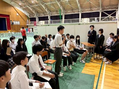 いやぁ、素晴らしい機会をいただきました。見て聞いて、先進的な活動をされている同じ高校生から多くの刺激や学びを得たのではないでしょうか。2年生の皆さん、「なるほど、やってみよう!」など感じたことが次への探究へと繋がります。是非、その気持ちを大切に行動へ繋げてくださいね。2年生の皆さん、お疲れ様でした!そして、村岡高校の皆さま、お世話になりありがとうございました!