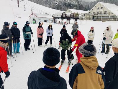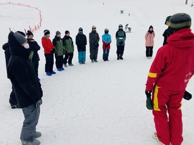 さて3連休明けて本日から6限(チャレンジ類型は7限)授業が本格的にスタートしましたが、教科「アクティブ」では全学年共通でスキーが行われ早速、2,3年生はちくさ高原スキー場で雪山に親しみました。千種町内で降り続く雨もスキー場では雪に変わりましたが、積雪は90cmでスキーコンディションはまずまず…。特別非常勤講師の山下先生ご指導のもと、準備運動や技術指導を受けた後、リフトに乗って山頂へと向かいました。私は軽装で行ったため、とにかく寒くて寒くて途中で下山しましたが、生徒たちは完璧な装備で雪山を全力で楽しんでいました。いやぁ、今年もスキー実習が始まりましたねー。生徒の皆さん、こうして千種ならではの自然を相手にした体験活動ができることに感謝して、今年も全力で楽しんでくださいね。全面的に協力いただいている、ちくさ高原スキー場の皆さま、山下先生をはじめとするインストラクターの皆さま、どうぞよろしくお願いいたします。