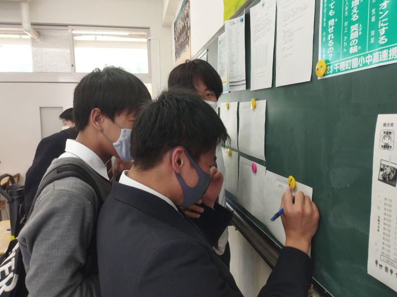 放課後残って勉強したり、テストの間の休み時間も必死で復習したり頑張っている人がいましたが、考査中に寝ていたり、考査中に遊びに行ったりしたような話も聞こえてきました、、、、