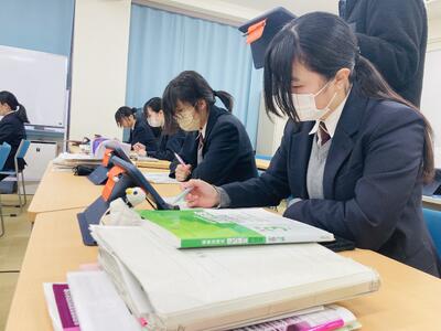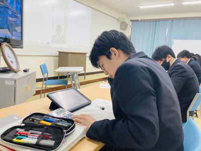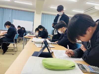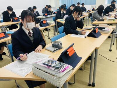 さて本日2限、2年生ベーシック類型で実施している簿記の遠隔授業にお邪魔しました。県教委からの3年間の研究指定を受けて平成30年度からスタートした県立和田山高校との遠隔授業ですが、研究指定期間が終わってからも和田山高校の先生方のご厚意によって今日まで8年間に渡って継続してきた授業です。県下では初となる単位認定まで行い、商業の教員がいなくても簿記の授業が受けられ資格がとれる授業としてベーシック類型の特色ある授業の一つでした。しかし、様々な理由により今年度をもって最後となり、今日が遠隔での最終授業日となりました。そんな和田山高校との遠隔授業が最後かと思うと非常に寂しいですが、来年度からは非常勤講師の先生をお迎えし、対面での簿記授業を実施する予定です。簿記の授業はありますので、どうか安心してください。