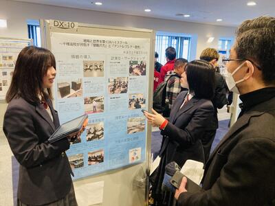 こうしたポスター発表の経験のない二人でしたが、集まった聴衆を前にひるまず素晴らしい発表を披露し、質問されても適切に応えられており、ホントによく頑張っていました。いやぁ、緊張したと思いますがよく頑張った!!こうした機会に、他校の取組や生徒の姿に触れられたことで様々な刺激を受けたようでした。大変だったと思いますが、自身の成長と今後の活動に繋がるよい機会でしたね。生徒の皆さん、引率の先生、大変お疲れまでした!