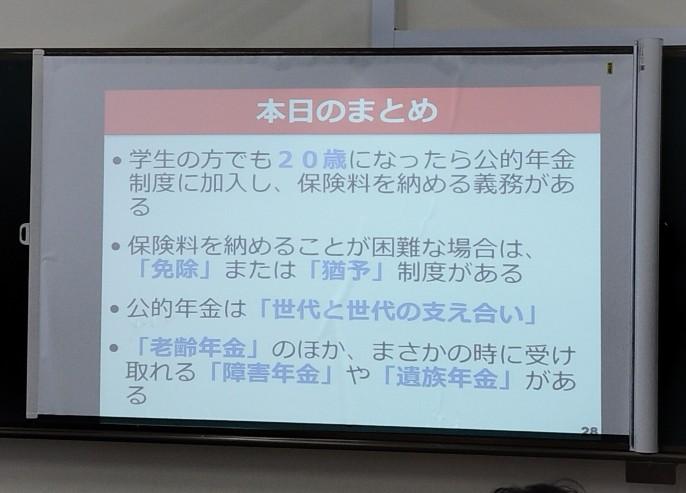 ★『スマイル49回生』年金セミナー★ 投稿日時 : 2023/12/12 教諭(teacher)_1 今日は、姫路年金事務所の方から 年金のお話をして頂きました。 少子高齢化なので支払った分 年金をしっかりと 受給できるかが少し不安ですが まずは年金をしっかりと 支払わないといけません。 国民としての大切な知識を 得ることができました。 年金事務所の方々 ありがとうございました!! 【桃太郎で年金制度の紹介】 【本日のまとめ】 学生でも20歳になったら年金支払い義務がでてくるよ! 【委員長 田口琉磨】 お礼の言葉